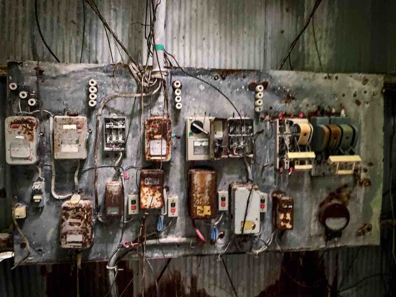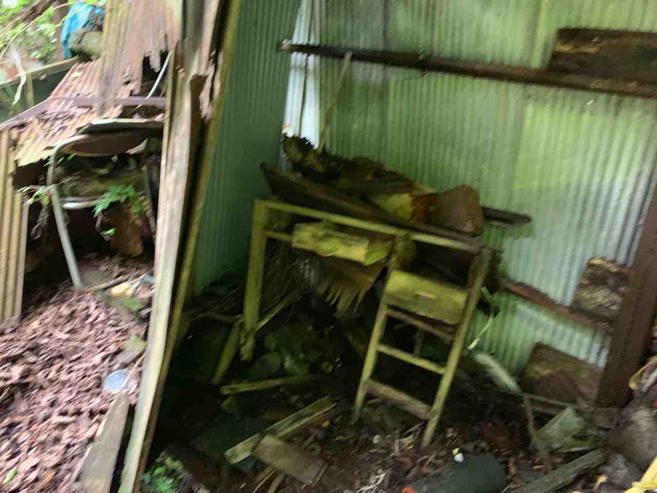 工場とサイロがある近くには木造の建物がいくつかありました。画像にある机?は昔事務所だった事が分かります