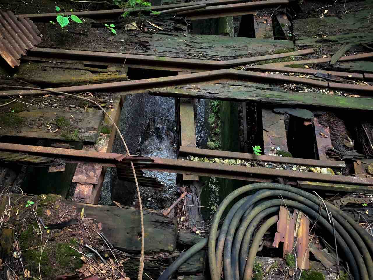 錆びたレールの上には運搬車は残っておらず先に進むとあるみたいでしたが、奥まで行こうとリベンジした所足元が危なく断念。。