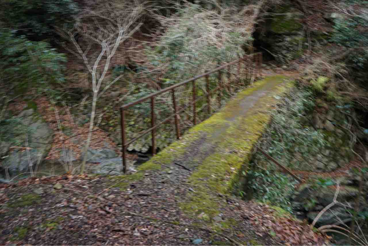 石碑から目的地へと向かう道中にコケに溢れた橋があります。