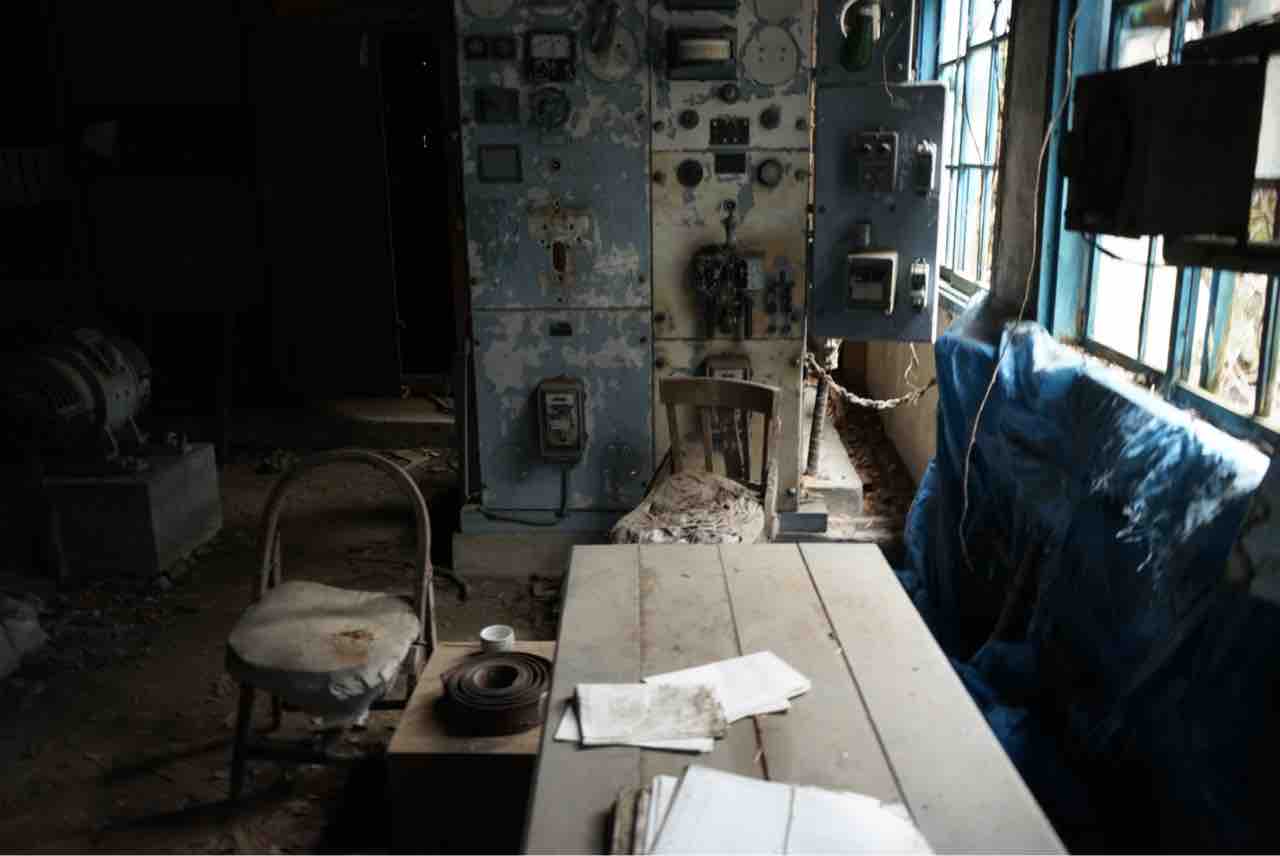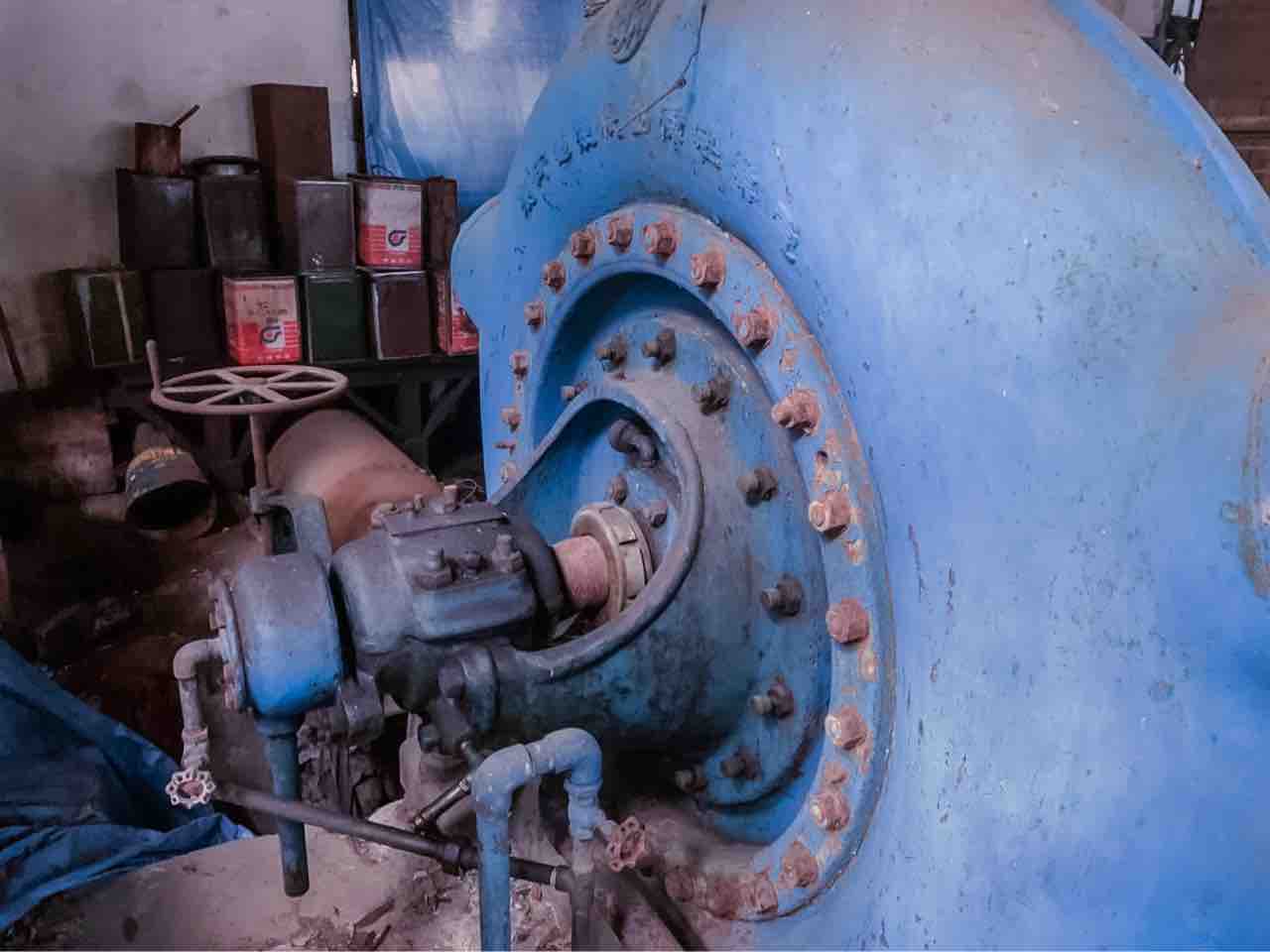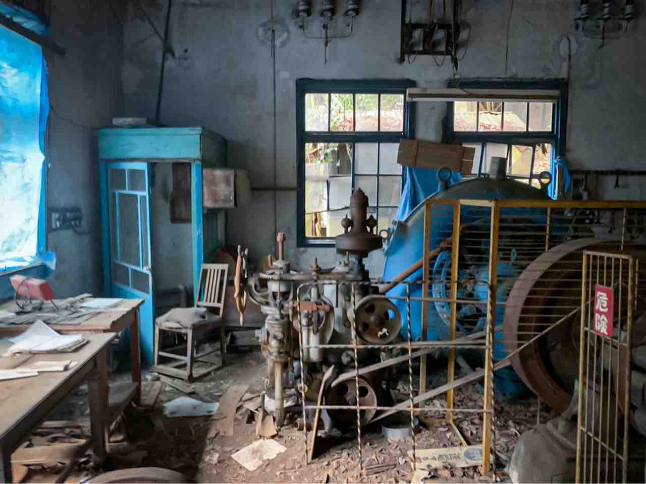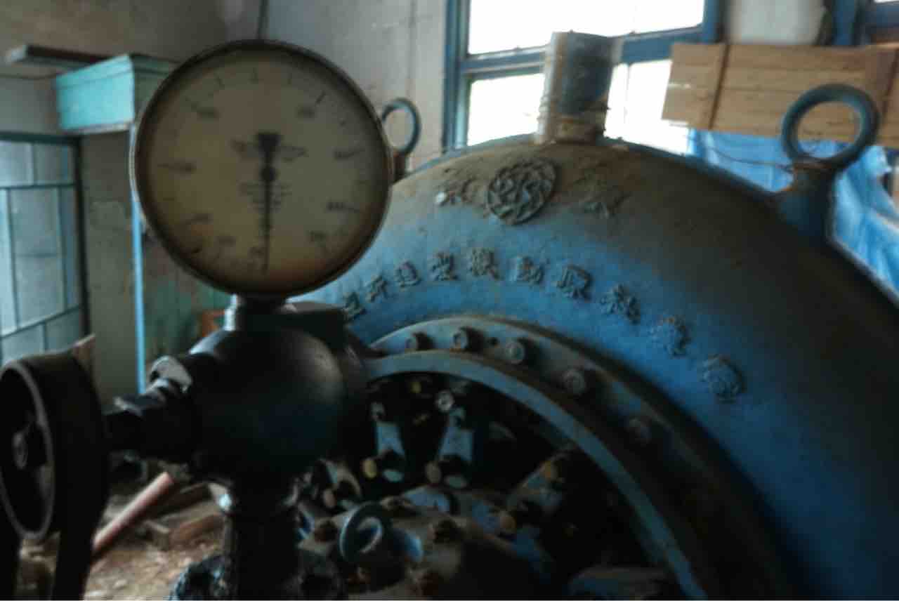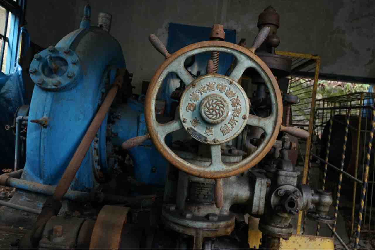 時山第一発電所の内部には当時使われていたテレホンボックスやタービンが残されている。