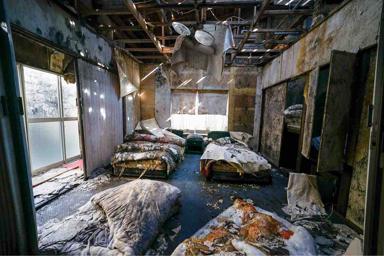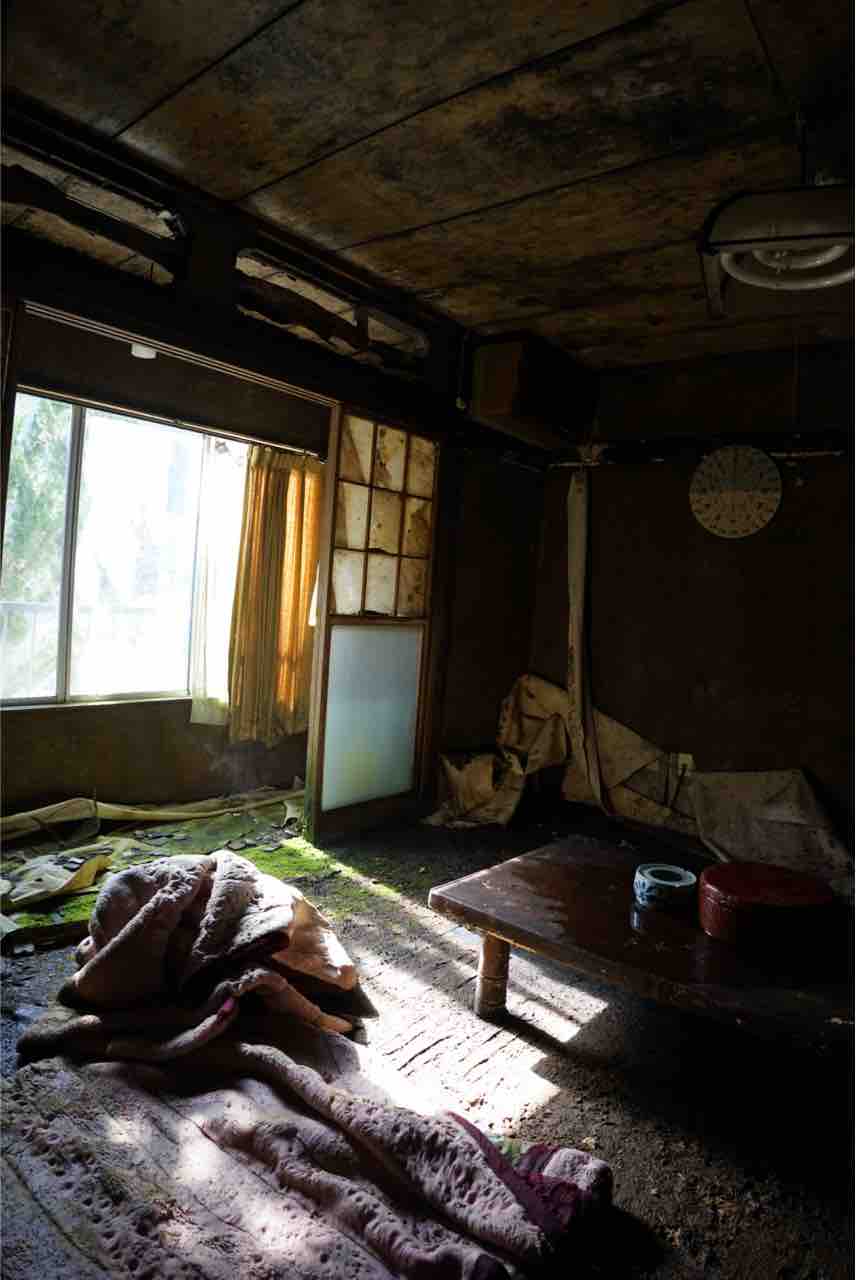 部屋数は2階も含めて15部屋くらいあった記憶がありますが、どの部屋も畳が真っ黒になり苔やキノコが生えてるような状態でした。