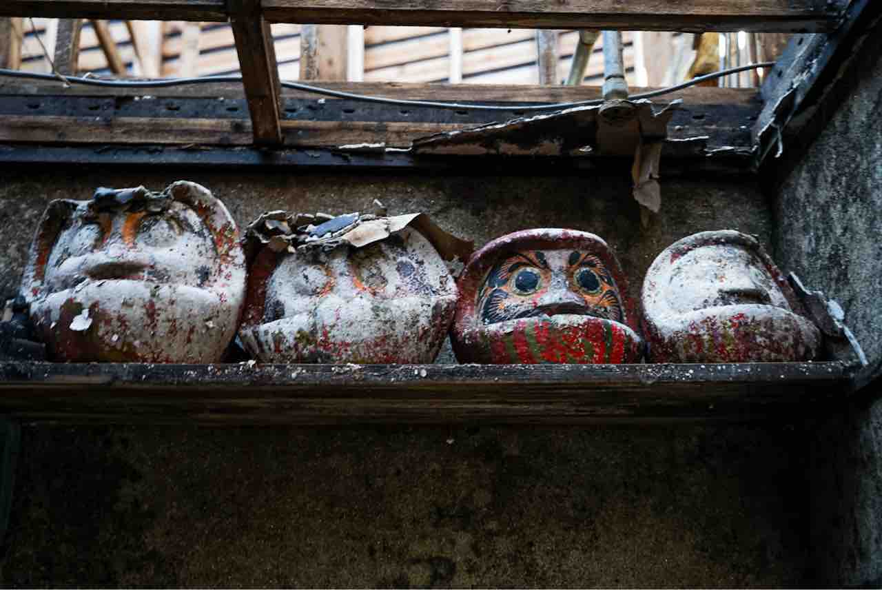 管理室の撮れ高は達磨くらいですかね。これも雨の影響をもろ受けてるのかボロボロでした。